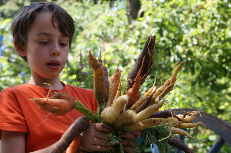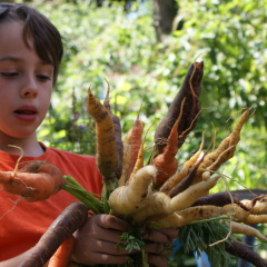 In die einzeln abgesteckten Beete wurden dann Gemüsesorten gepflanzt, die man so in keinem Laden finden kann: Blaue Kartoffeln, weiße Karotten und gelbe "rote" Beete, Tomaten die aussehen wie goldene Birnen und fast vergessene Bohnen- und Gurkensorten.